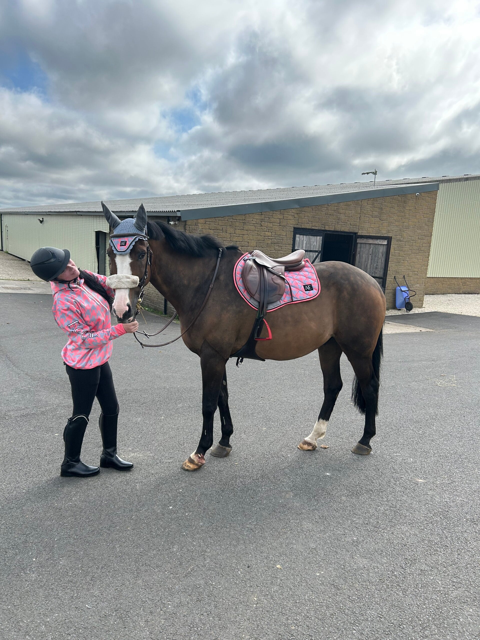 Grey and coral saddle pad set